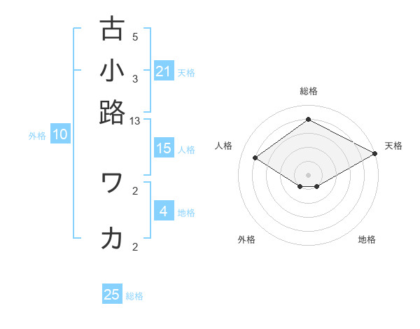 古小路 ワカさんを姓名の画数から五運を鑑定