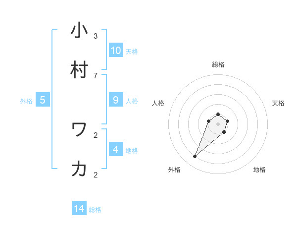 小村 ワカさんの総格は14画の1点!