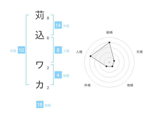 苅込 ワカさんを姓名の画数から五運を鑑定