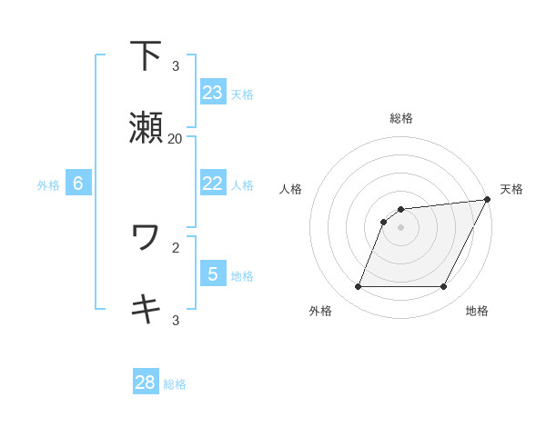 下瀬 ワキさんを姓名の画数から五運を鑑定