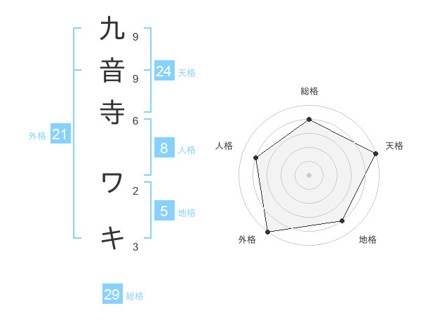 九音寺 ワキさんを姓名の画数から五運を鑑定