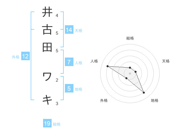 井古田 ワキさんを姓名の画数から五運を鑑定