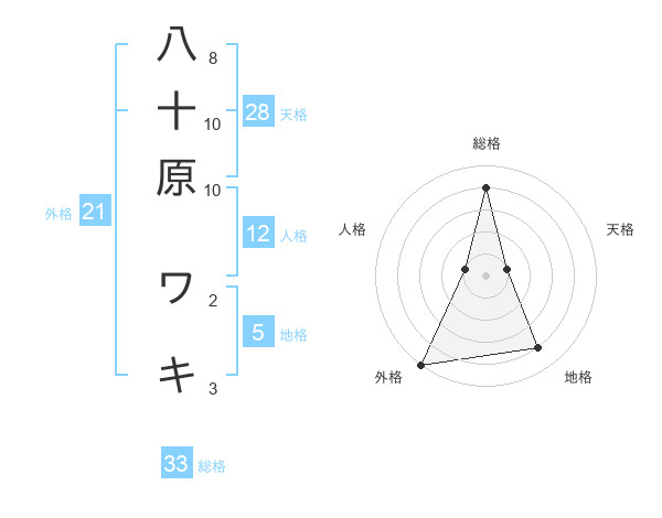 八十原 ワキさんを姓名の画数から五運を鑑定