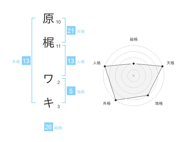 原梶 ワキさんを姓名の画数から五運を鑑定