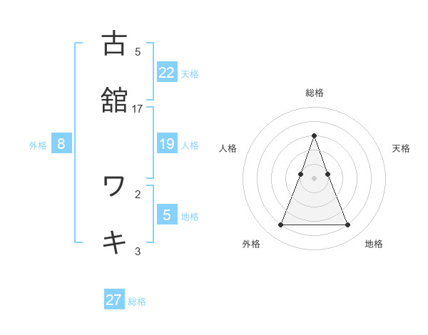 古舘 ワキさんの総格は27画の3点!