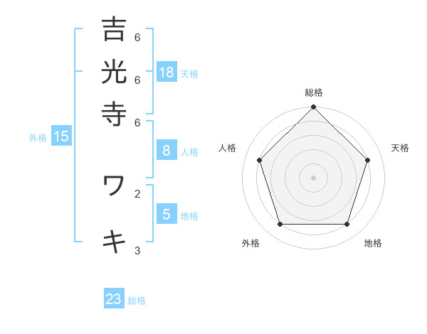 吉光寺 ワキさんの総格は23画の5点!
