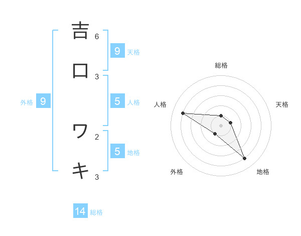 吉口 ワキさんの総格は14画の1点!