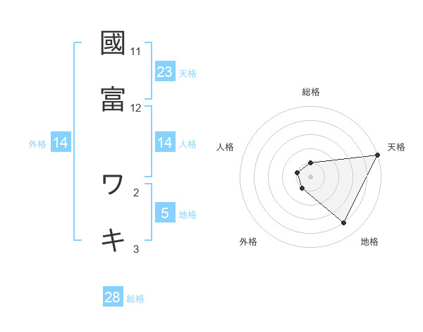 國富 ワキさんの天格は23画の5点!