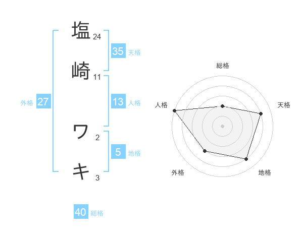 塩崎 ワキさんを姓名の画数から五運を鑑定