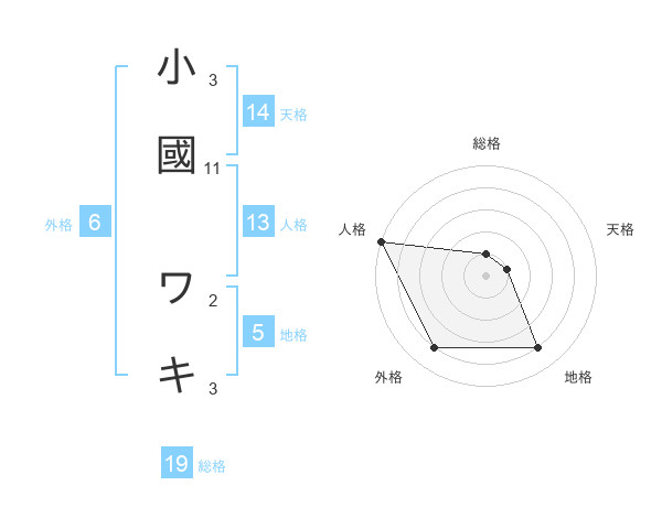 小國 ワキさんの総格は19画の1点!