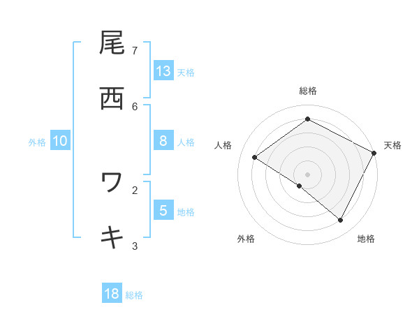 尾西 ワキさんの天格は13画の5点!