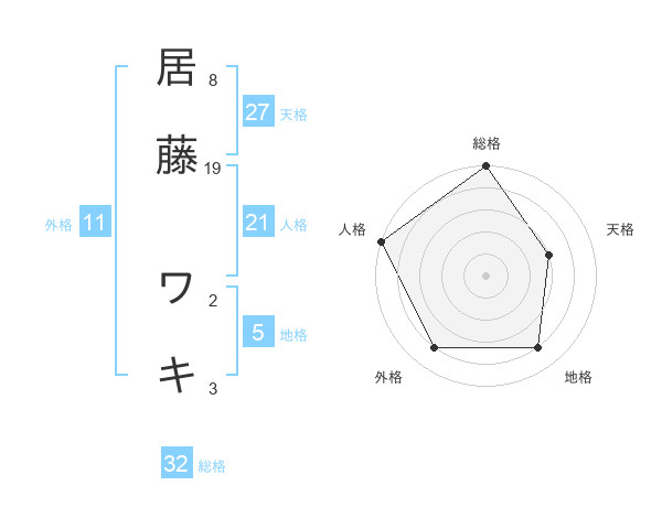 居藤 ワキさんを姓名の画数から五運を鑑定