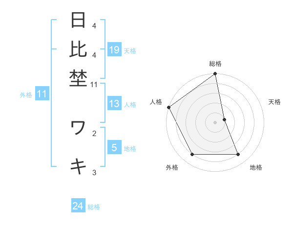 日比埜 ワキさんを姓名の画数から五運を鑑定