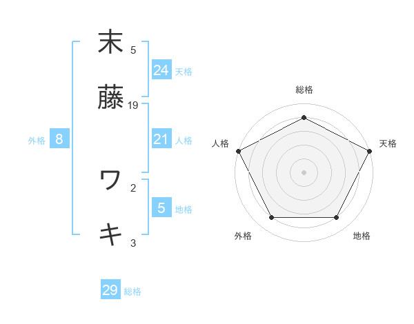 末藤 ワキさんを姓名の画数から五運を鑑定