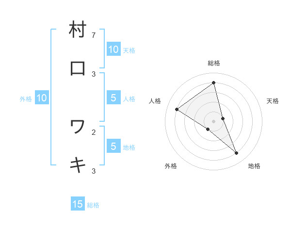 村口 ワキさんの総格は15画の4点!