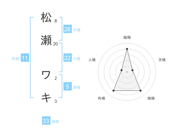 松瀬 ワキさんを姓名の画数から五運を鑑定