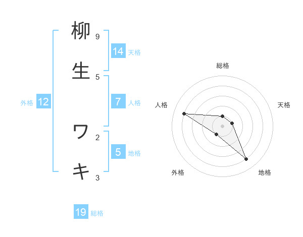 柳生 ワキさんの地格は5画の4点!