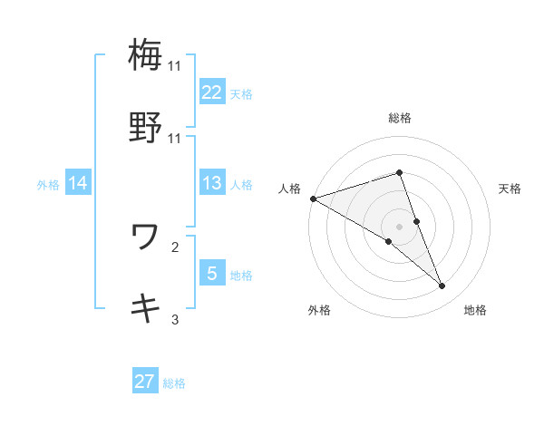 梅野 ワキさんの総格は27画の3点!
