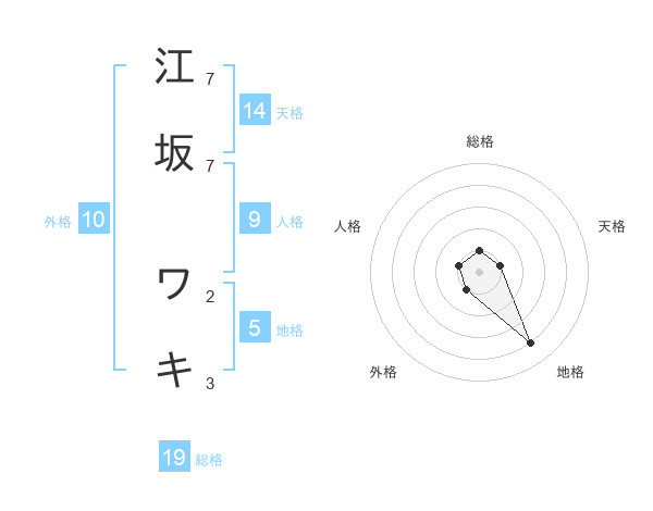 江坂 ワキさんの天格は14画の1点!