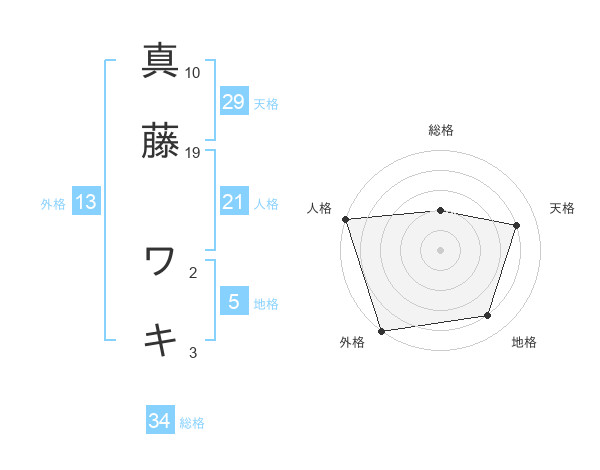 真藤 ワキさんを姓名の画数から五運を鑑定