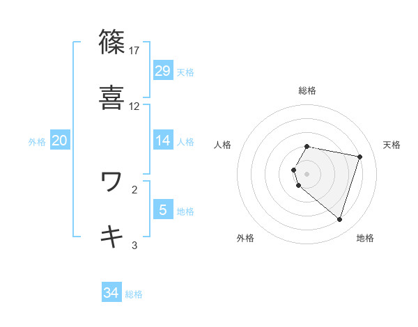 篠喜 ワキさんの天格は29画の4点!