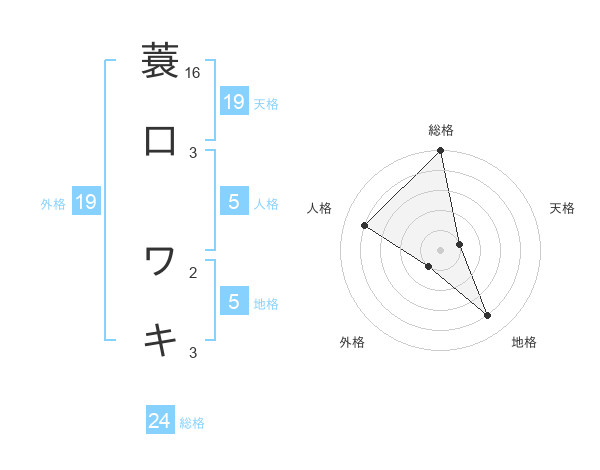 蓑口 ワキさんの総格は24画の5点!