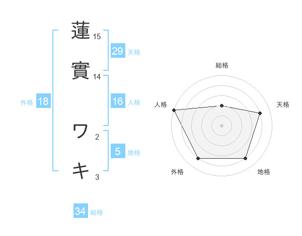 蓮實 ワキさんの総格は34画の2点!
