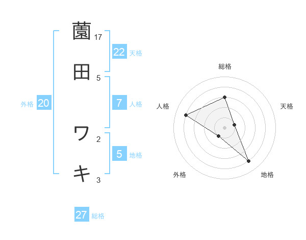 薗田 ワキさんの総格は27画の3点!