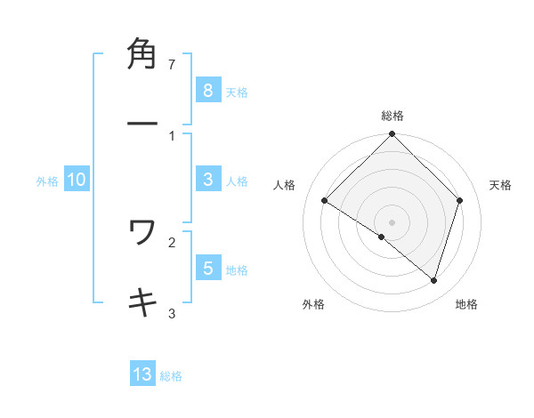角一 ワキさんの総格は13画の5点!