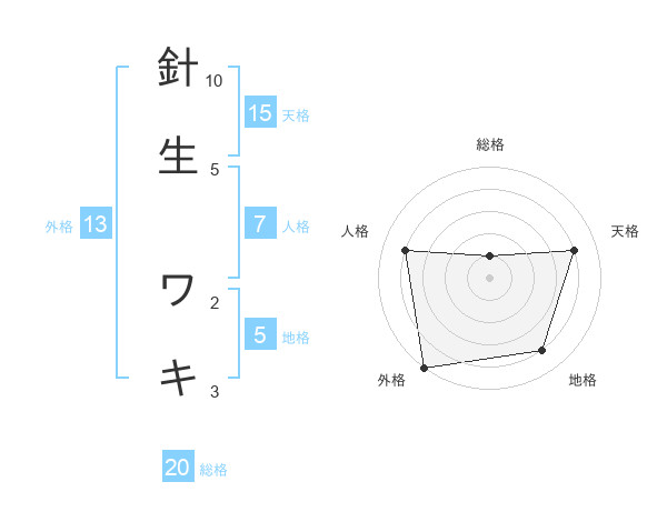 針生 ワキさんの総格は20画の1点!