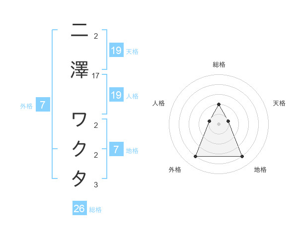二澤 ワクタさんの総格は26画の2点!