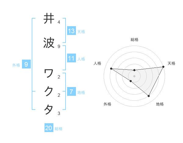 井波 ワクタさんを姓名の画数から五運を鑑定