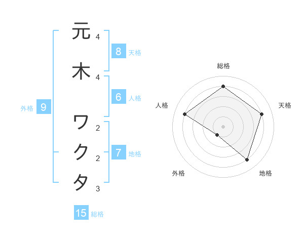 元木 ワクタさんの総格は15画の4点!