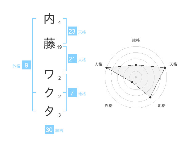 内藤 ワクタさんを姓名の画数から五運を鑑定
