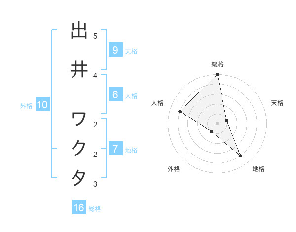 出井 ワクタさんを姓名の画数から五運を鑑定