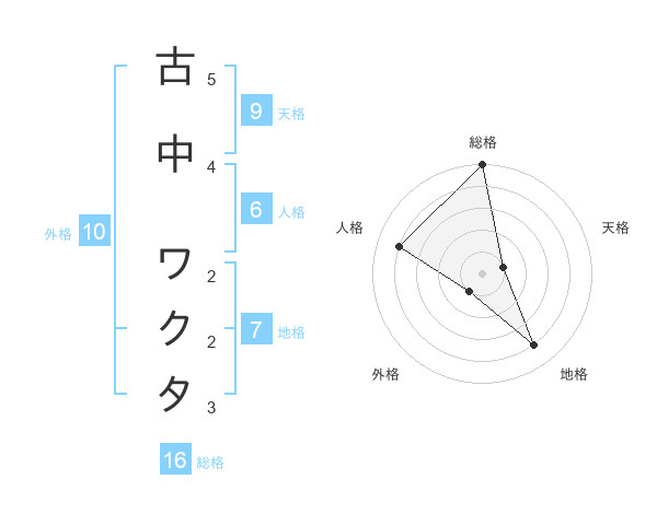 古中 ワクタさんを姓名の画数から五運を鑑定