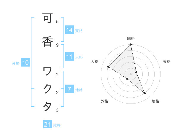 可香 ワクタさんの総格は21画の5点!