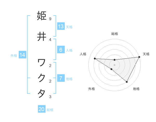 姫井 ワクタさんの総格は20画の1点!