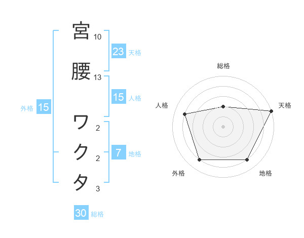 宮腰 ワクタさんの天格は23画の5点!