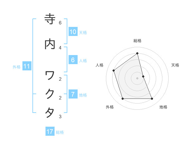 寺内 ワクタさんの総格は17画の4点!