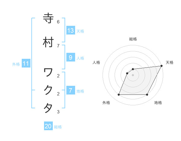 寺村 ワクタさんを姓名の画数から五運を鑑定