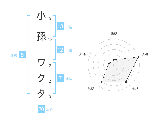 小孫 ワクタさんの天格は13画の5点!