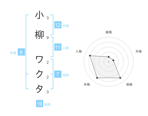 小柳 ワクタさんの天格は12画の1点!