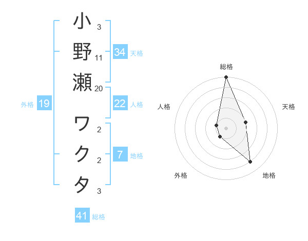 小野瀬 ワクタさんを姓名の画数から五運を鑑定