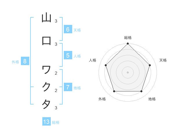 山口 ワクタさんの総格は13画の5点!