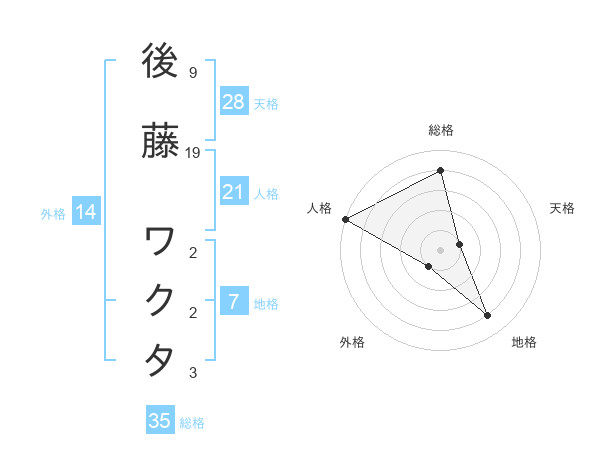 後藤 ワクタさんの外格は14画の1点!