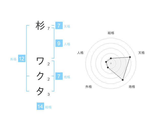 杉 ワクタさんの総格は14画の1点!