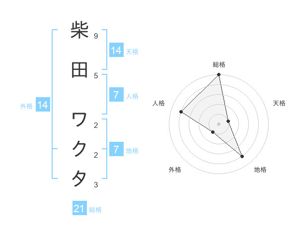 柴田 ワクタさんを姓名の画数から五運を鑑定