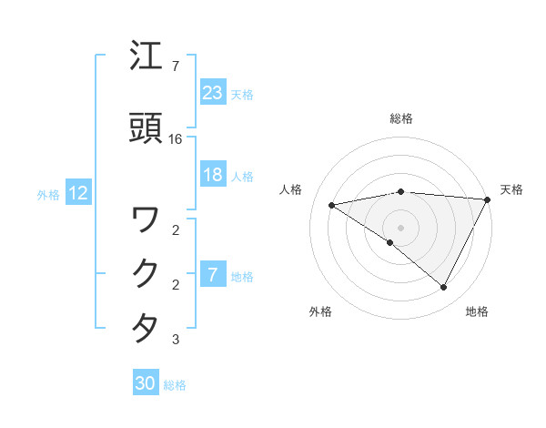 江頭 ワクタさんを姓名の画数から五運を鑑定