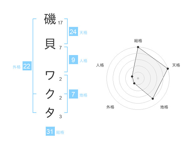 磯貝 ワクタさんの総格は31画の5点!